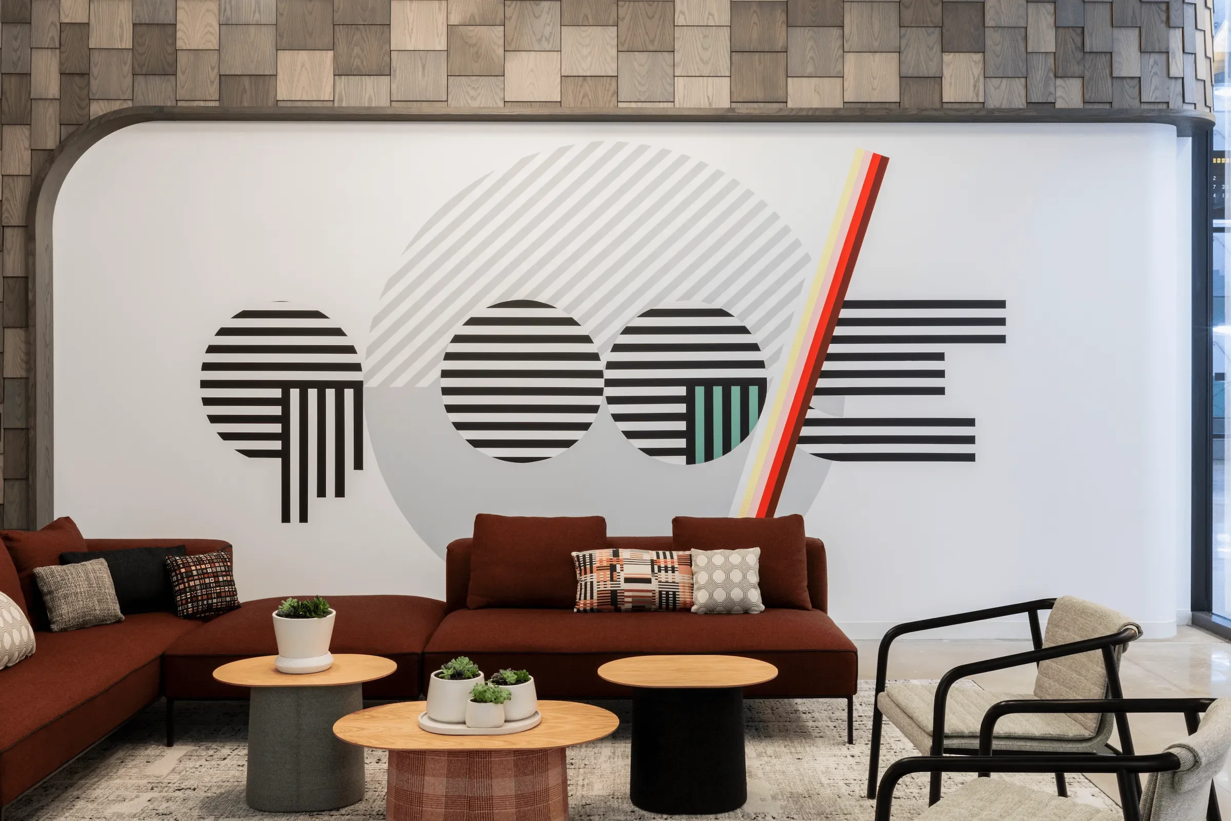 Working closely with Google's project executives and design partners, we curate site-responsive commissions and acquisitions that reflect each office's unique character and the vibrant artistic communities surrounding them. From large-scale murals celebrating neighborhood histories in Montreal to sculptural installations bridging art and science in Cambridge, each artwork is carefully selected to activate architectural spaces while providing meaningful opportunities for artists to expand their practices. Our projects span diverse media—painting, sculpture, fiber art, printmaking, and site-specific installations—showcasing the breadth of contemporary artistic practice while maintaining a commitment to supporting local and emerging voices.