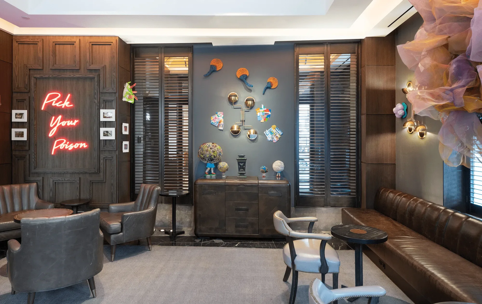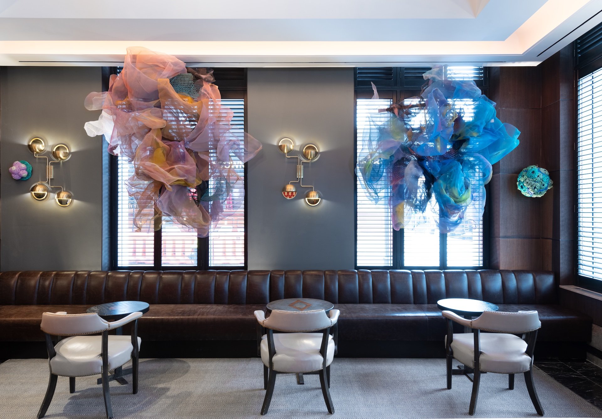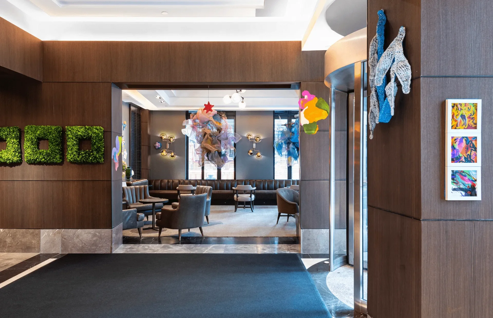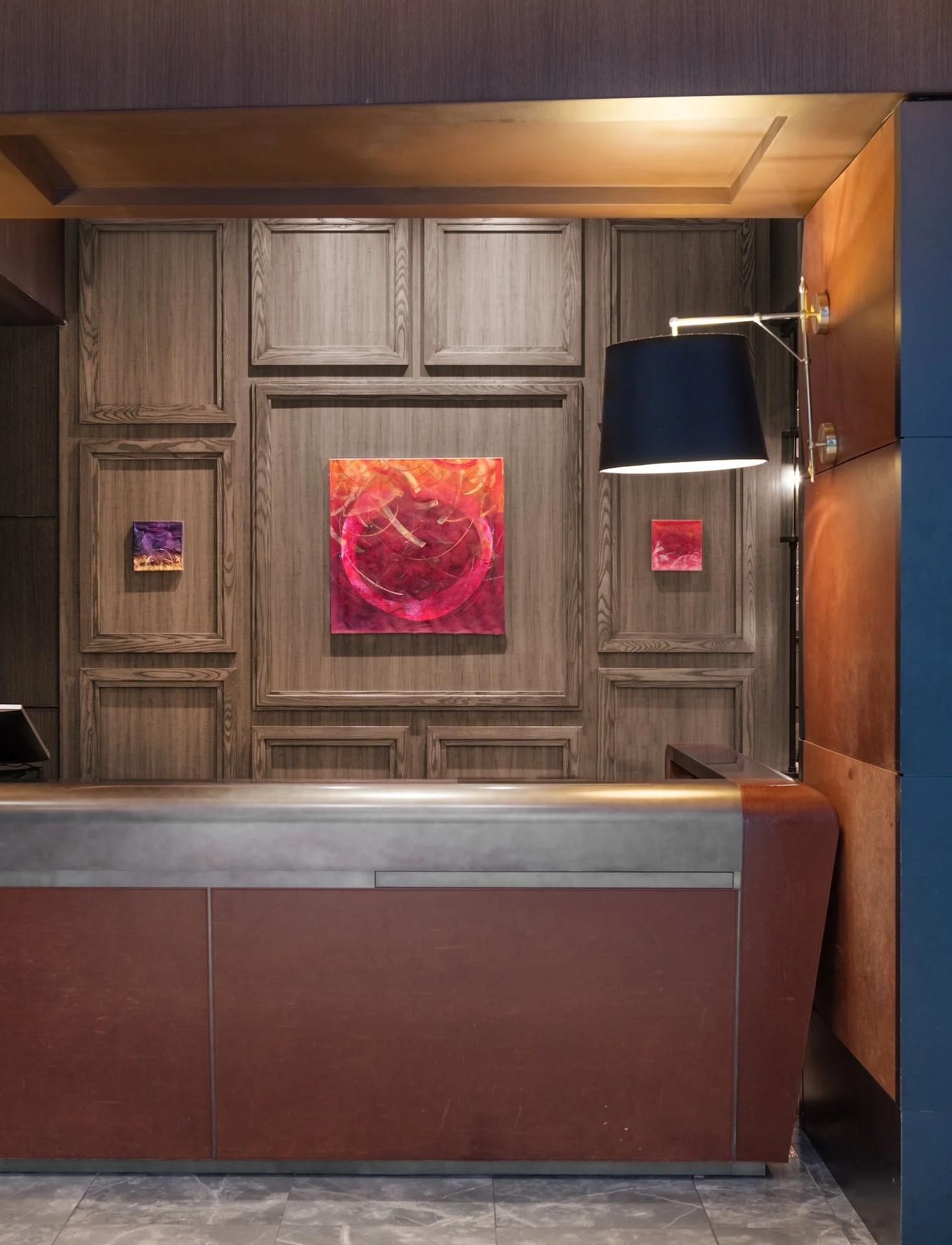 About the exhibition: Ringing in the holiday season, we collaborated with avec to curate an immersive art pop-up at the Kimpton Nine Zero Hotel. JOYFUL | SPACES OF GATHERING celebrated the spirit of reconnecting in community. Responding to the space's architecture, design, and environment, we integrated a showcase of works by Boston artists, offering an unparalleled experience to hotel guests and locals alike. The exhibition transformed the hotel into a site of encounter and celebration, emphasizing art's role in fostering connection during the return to gathering after isolation.